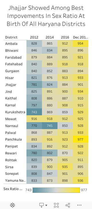 That Haryana’s intervention does not focus enough on behaviour change is apparent through the oft-changing sex ratio in Jhajjar, the district which claims among the greatest improvement of all districts between 2012 and 2018.